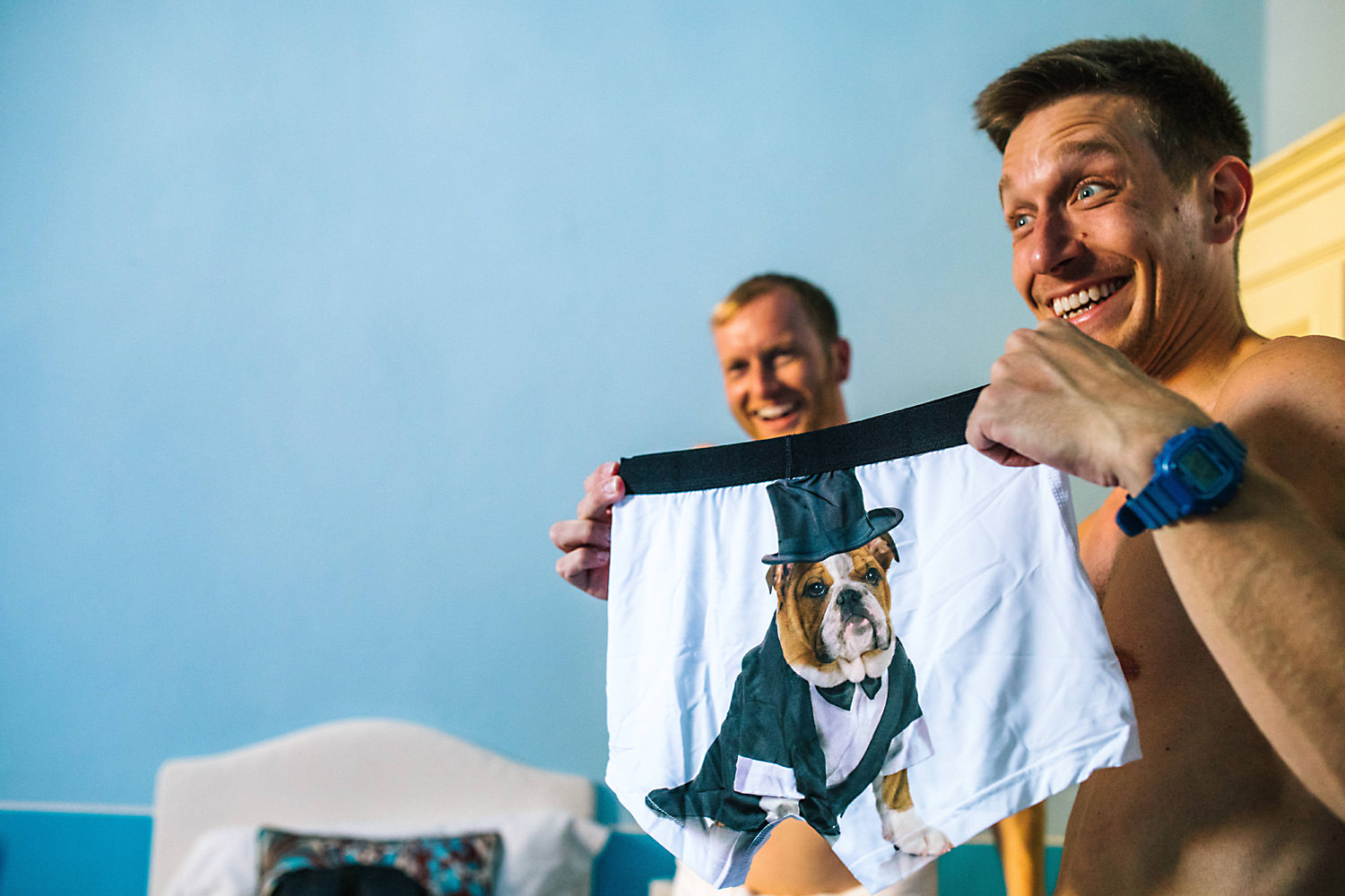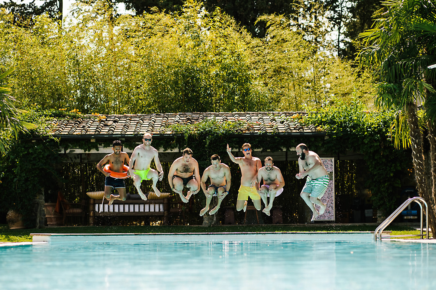 The morning of the wedding was really relaxed. Rhiannon and her Bridesmaids had some full on hair and makeup pampering in the bridal suite. there was a lot of laughter and tears and the girls were all super relaxed. The Ushers, Best men and rest of the boys were busy with their duties organising for the ceremony and reception downstairs decorating the place with lanterns, cute photo garlands and details for the tables. After all their hard work they decided that a beer in the pool was the best idea before getting into their groomsmen suits. The weather was amazing and most of the guests were outside by the pool enjoying a few pre wedding drinks.