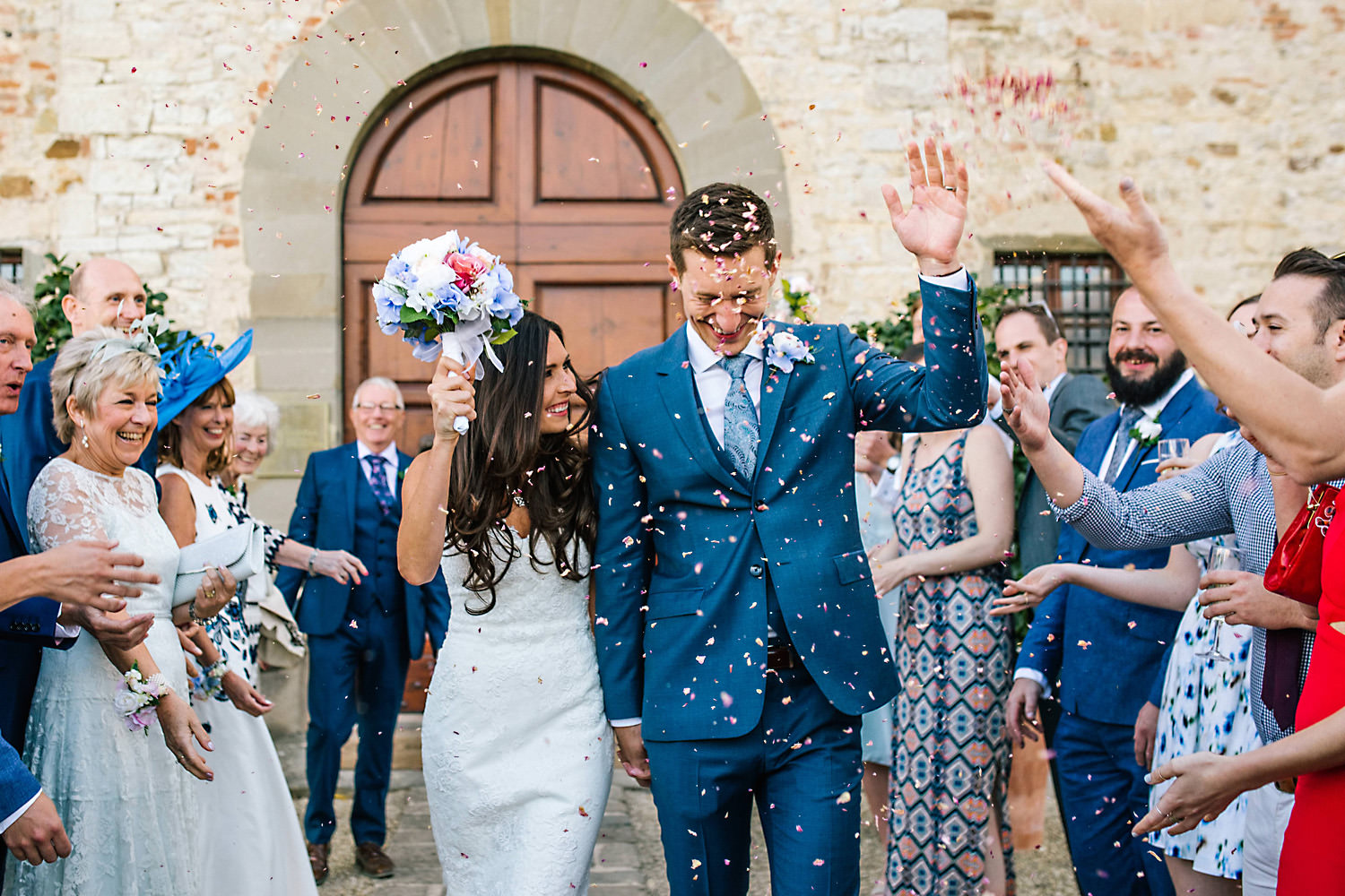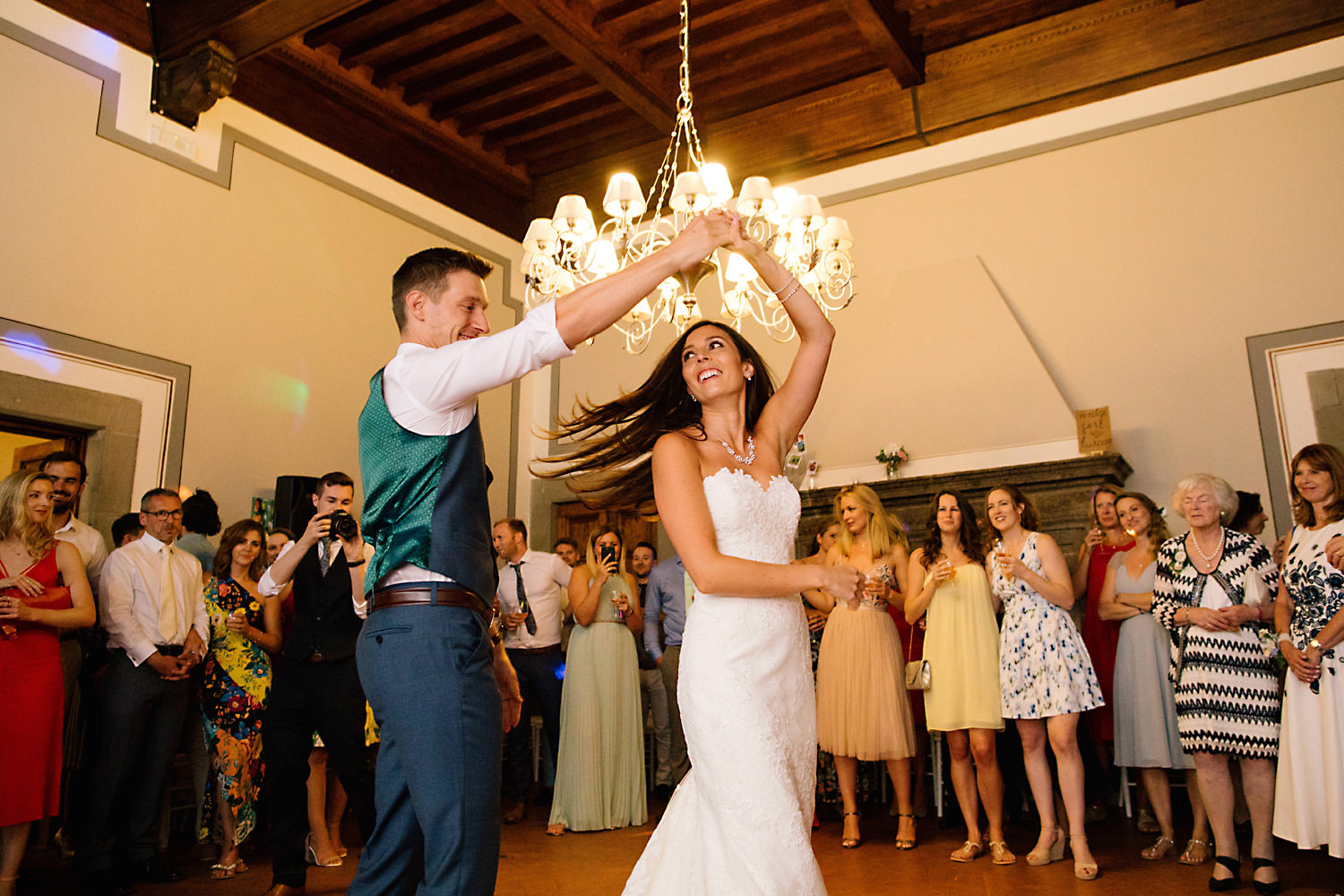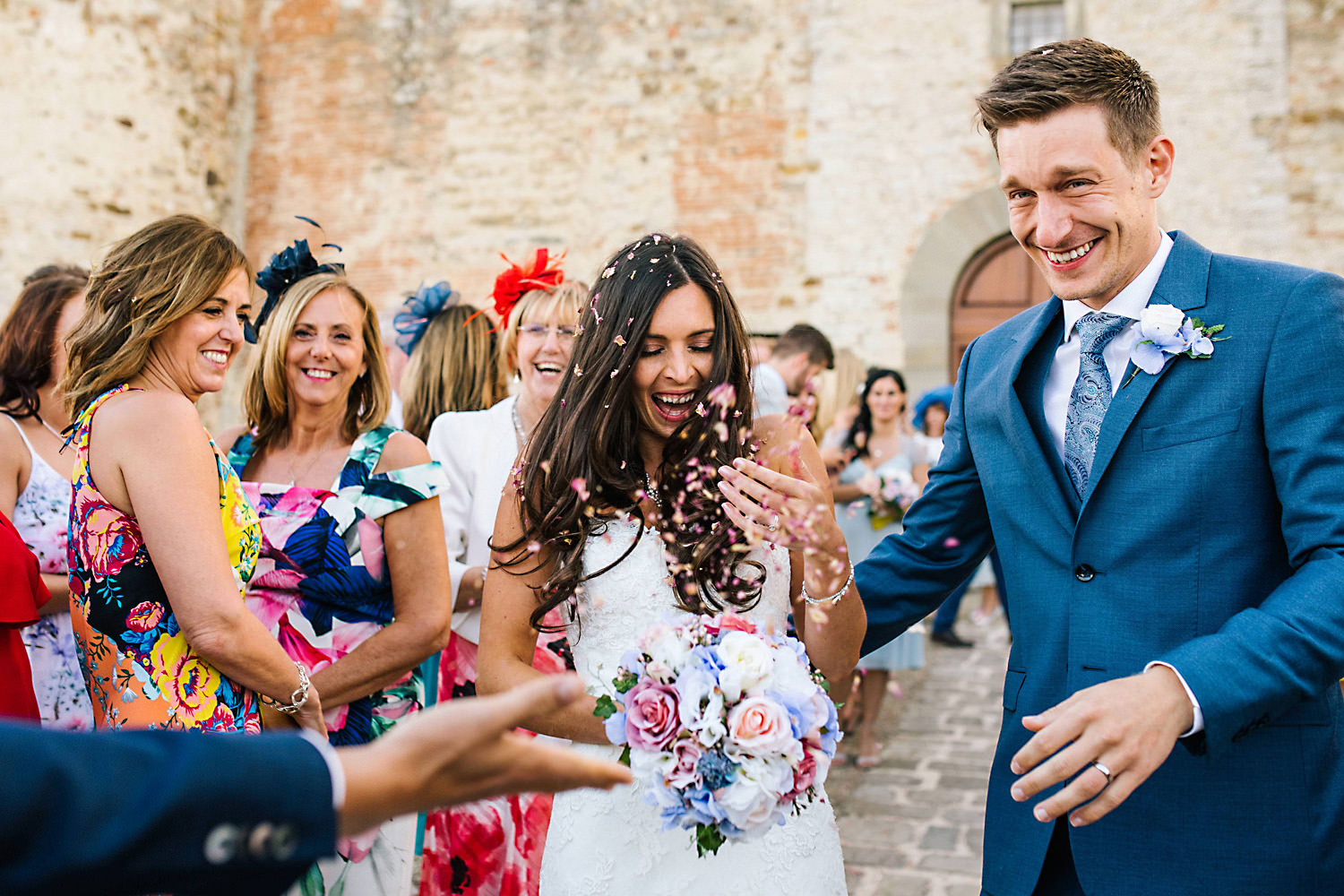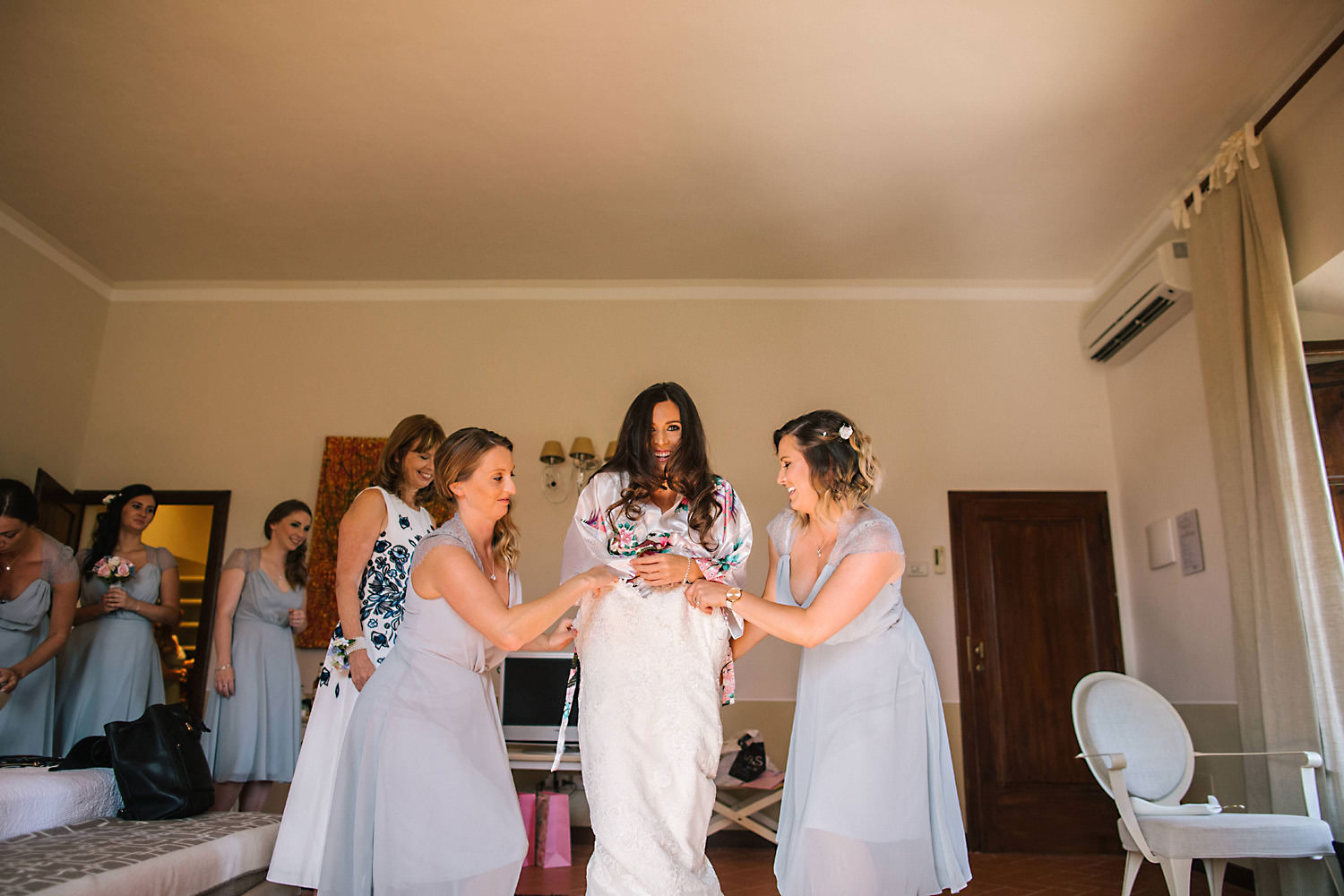 Most weddings abroad in the summer are late in the afternoon around 4pm onwards when the sun and temperature has dropped a little… and as I well know the weather in Tuscany can change rapidly, you can often see rain clouds coming over the mountains and before you know it they are on top of you with really heavy rain showers. About half an hour after the ceremony the sky looked like it was going to change so we quickly got group shots and Bride and Groom portraits done just in time as there was an almighty storm at night!
