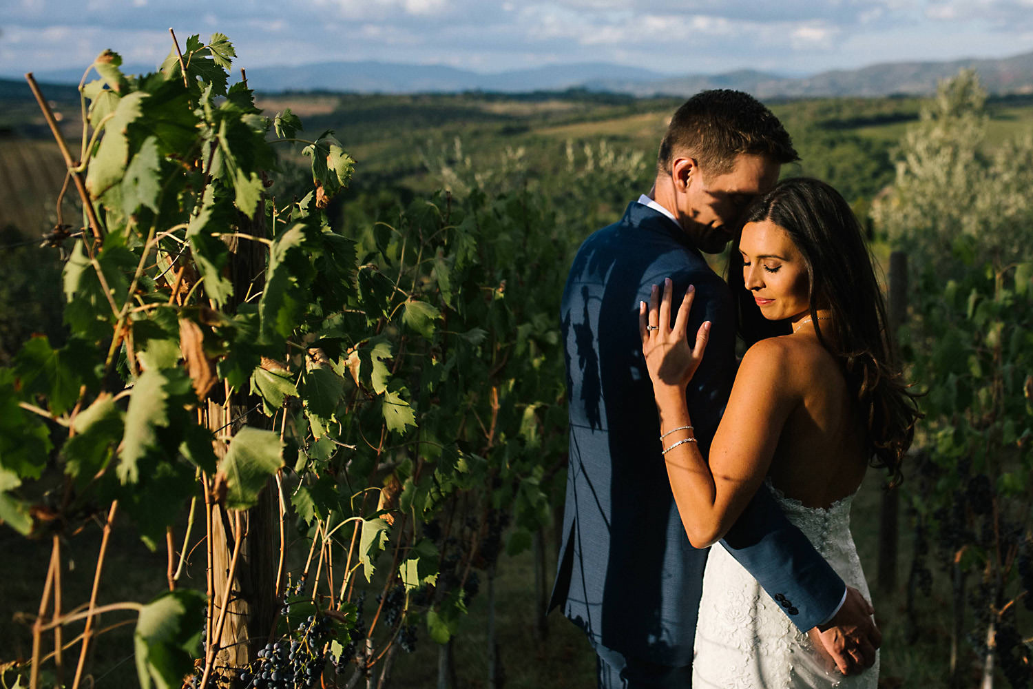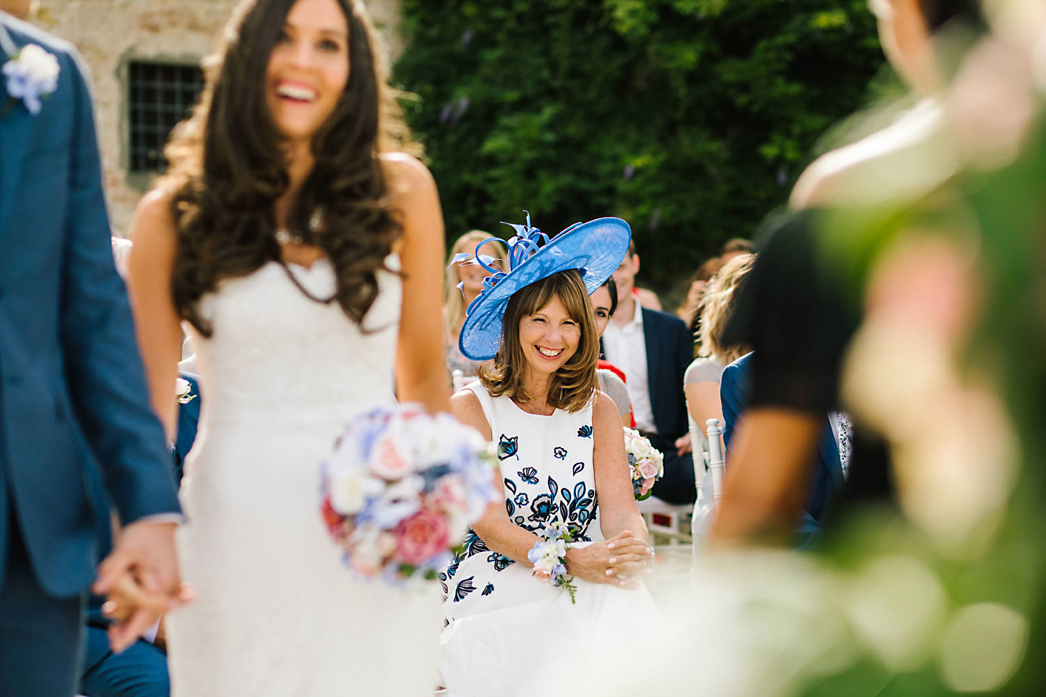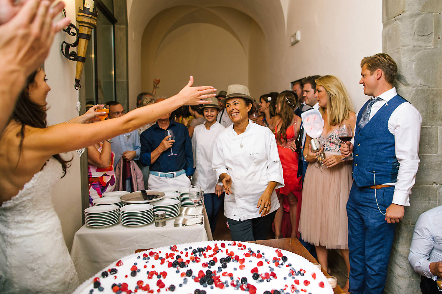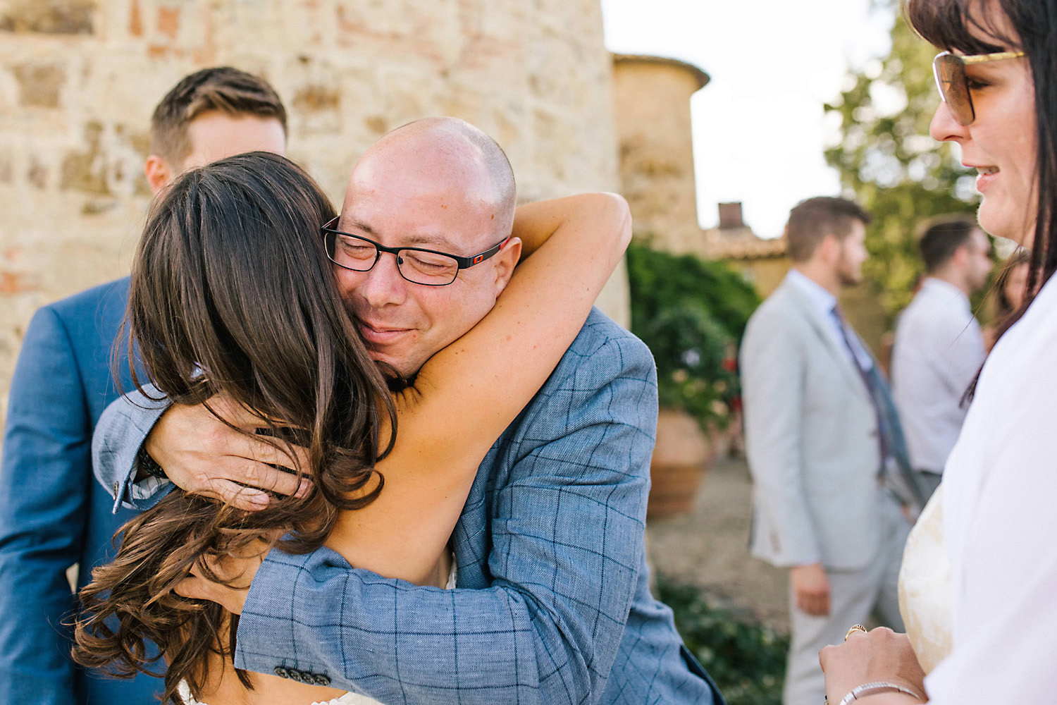 Most weddings abroad in the summer are late in the afternoon around 4pm onwards when the sun and temperature has dropped a little… and as I well know the weather in Tuscany can change rapidly, you can often see rain clouds coming over the mountains and before you know it they are on top of you with really heavy rain showers. About half an hour after the ceremony the sky looked like it was going to change so we quickly got group shots and Bride and Groom portraits done just in time as there was an almighty storm at night!