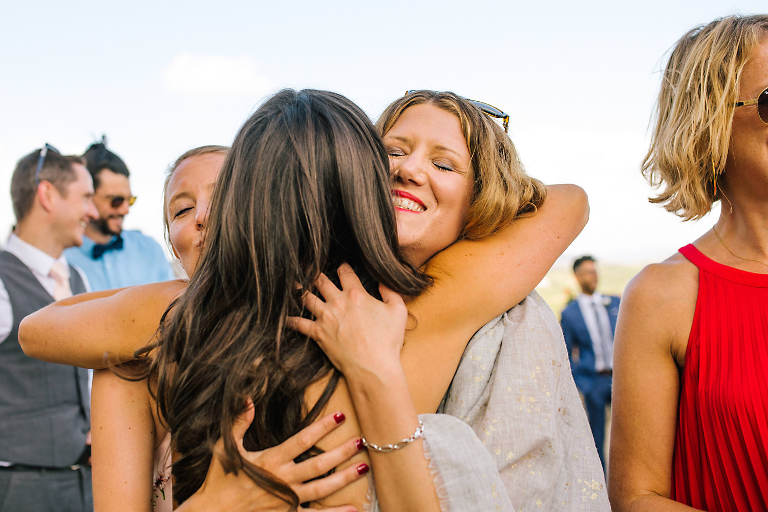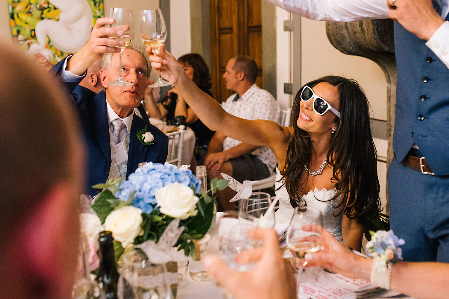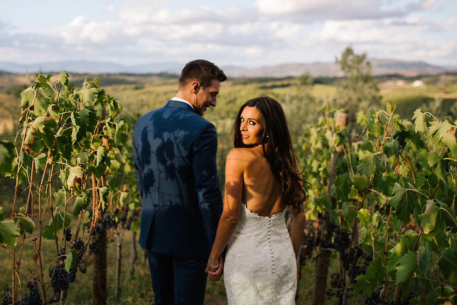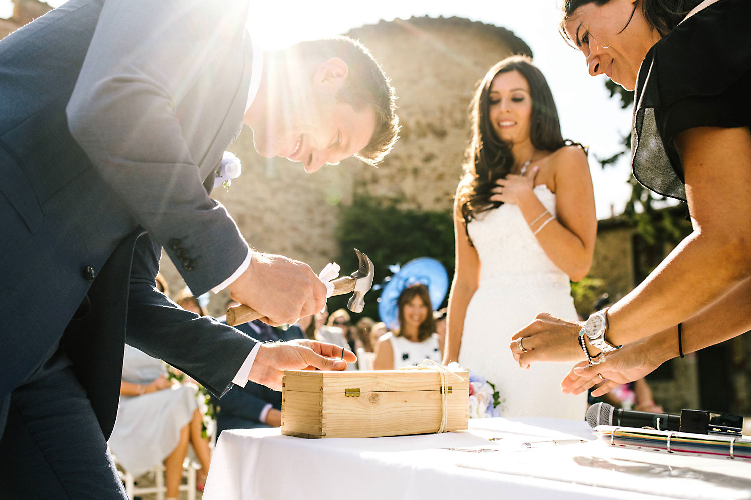 Most weddings abroad in the summer are late in the afternoon around 4pm onwards when the sun and temperature has dropped a little… and as I well know the weather in Tuscany can change rapidly, you can often see rain clouds coming over the mountains and before you know it they are on top of you with really heavy rain showers. About half an hour after the ceremony the sky looked like it was going to change so we quickly got group shots and Bride and Groom portraits done just in time as there was an almighty storm at night!