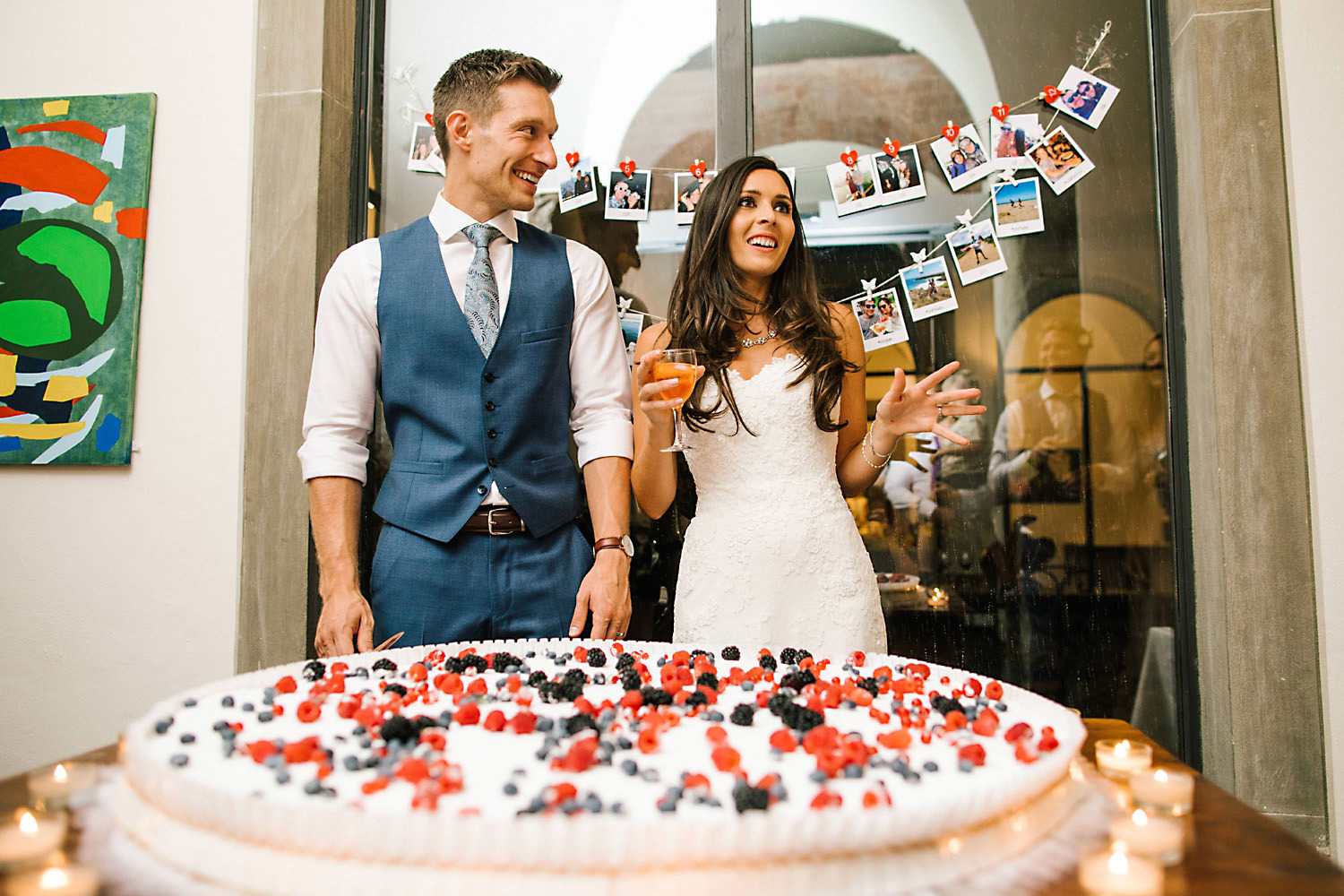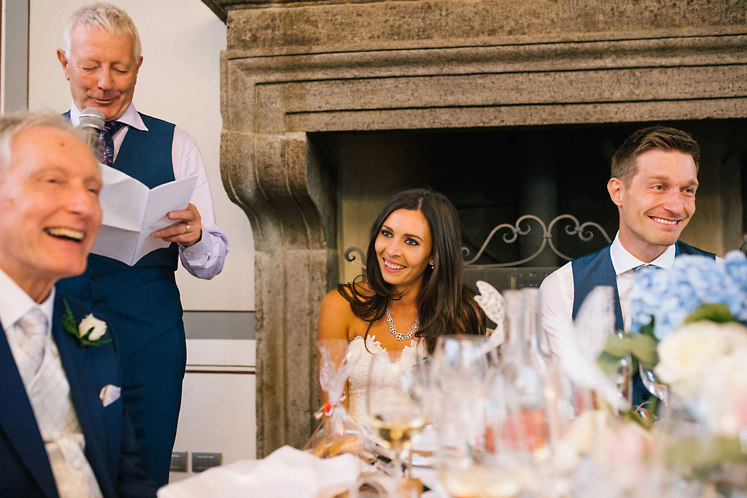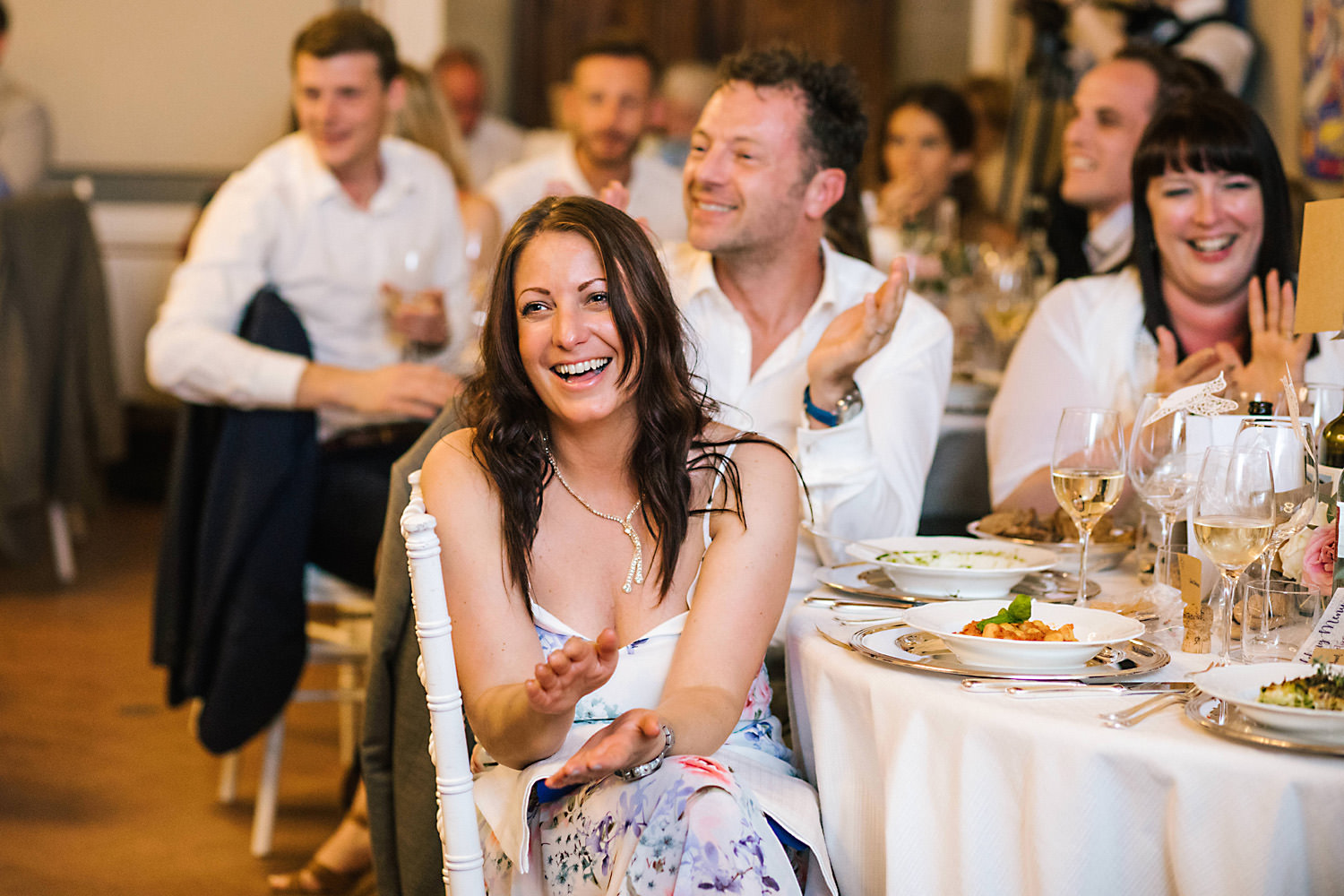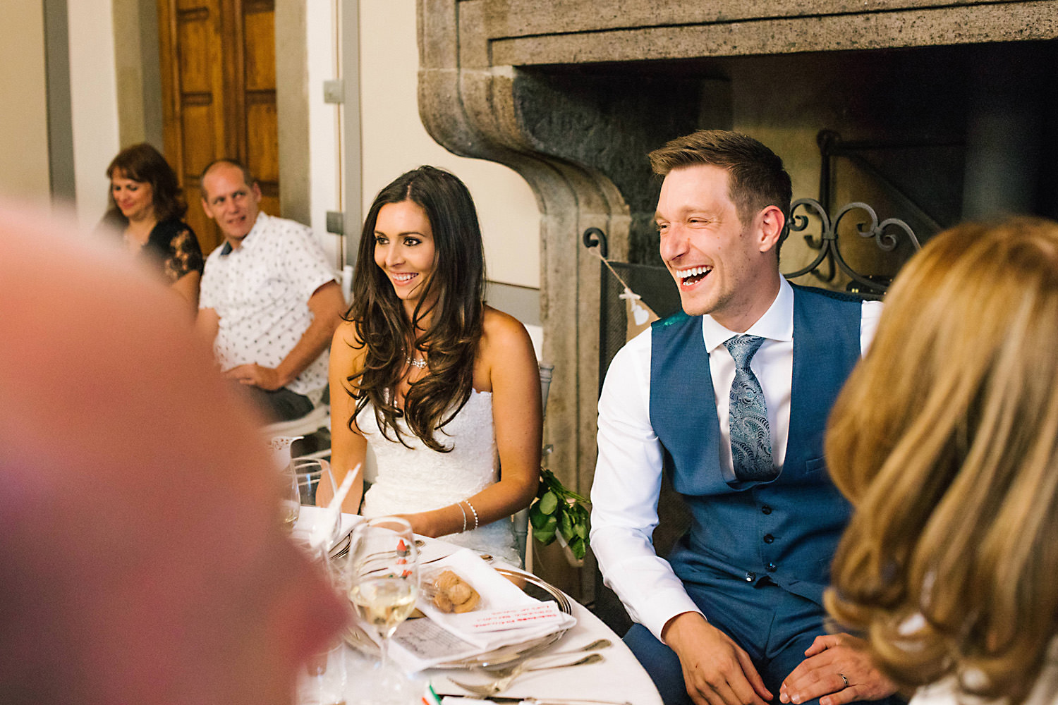 I flew out to Bologna and hired a car a couple of days before the wedding and found a beautiful villa in the countryside to stay in for a few days not far from the stunning Castello Di Gabbiano. I met up with Rhiannon and Mike and had a look around the Castle whilst we chatted about the wedding day plans. I took a few pre-wedding photos of them both at the venue just before sunset in the olive groves and around the outside of the Castle. You can see the pre wedding photoshoot here. The evening before the wedding Rhiannon and Mike and their families invited me along for a lovely Tuscan meal with all their guests which was such a nice idea for everybody to get to know each other before the wedding day.