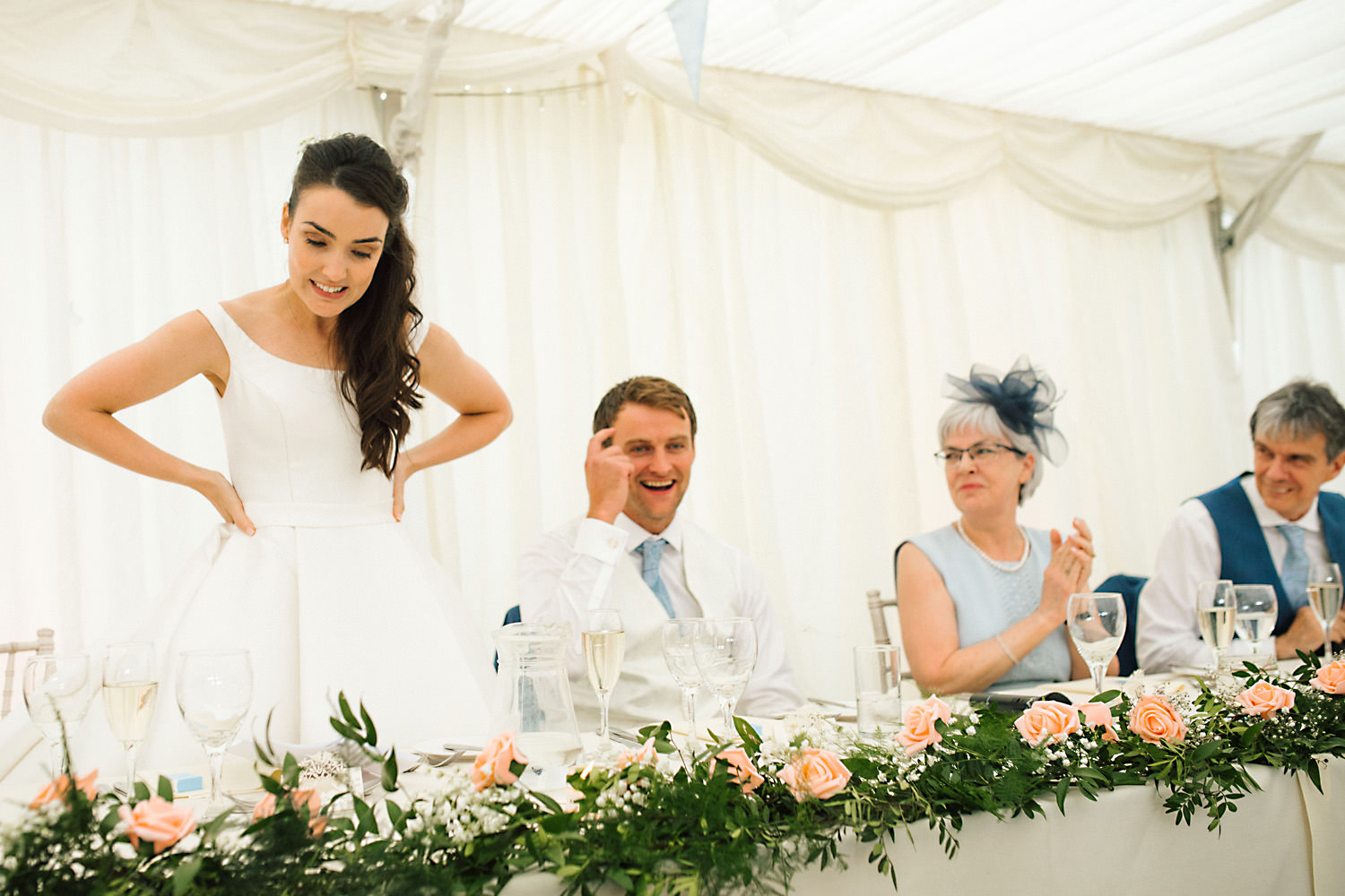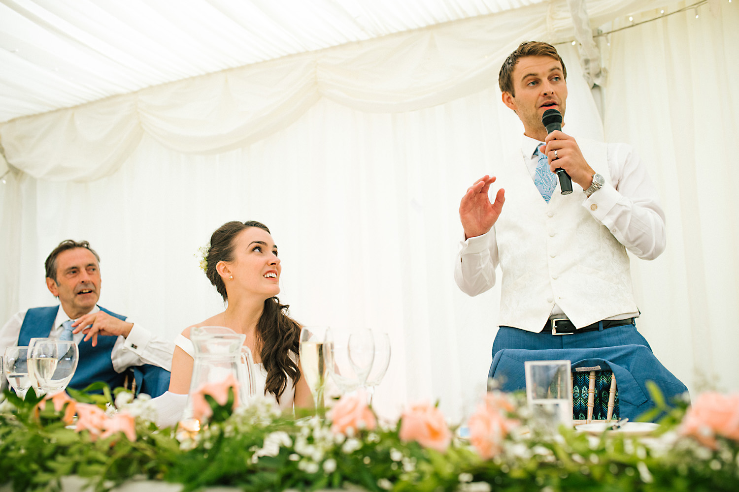 Chris and Laura had the most amazing wedding at Nunsmere Hall and with one of the best summers on record we were blessed with blue skies all day long! This is the first time I had photographed a wedding at Nunsmere Hall and I knew it was going to be amazing. It is set in stunning grounds in the heart of Delamere Forest in Cheshire. Chris and Laura had decided on an outdoor ceremony behind Nunsmere Hall in the beautiful gardens. After a few nibbles and giggles outside we made our way in for the wedding breakfast which took place in the huge marquee area of the venue.