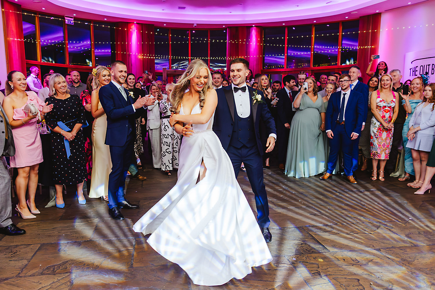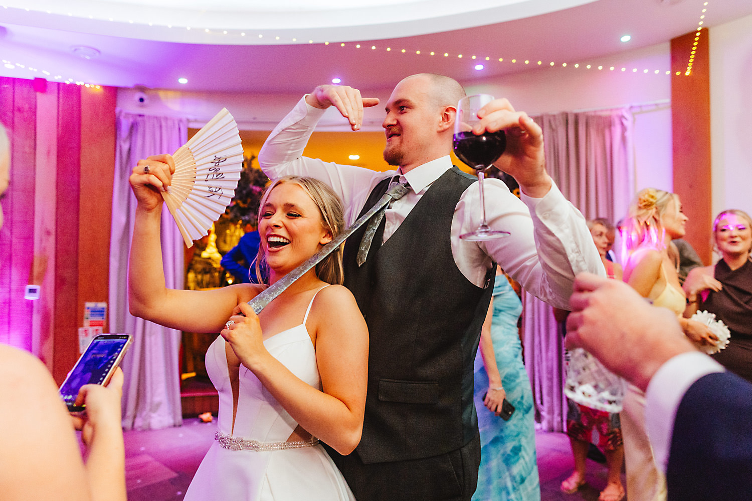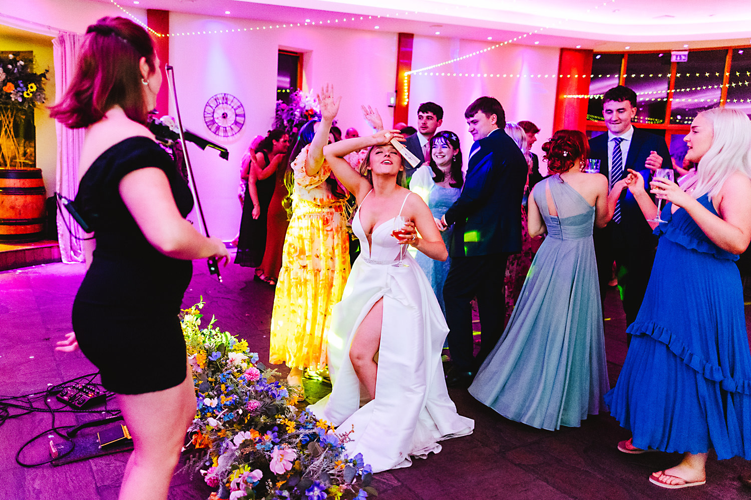 And then the entertainment really kicked in as the evening event came around. Yes, that is one of the groom’s party breakdancing upside down! Everyone really let their hair down as the DJ spun some tunes and the disco strobe lights transformed the space. The happy couple took to the dance floor, too, and delighted everyone.