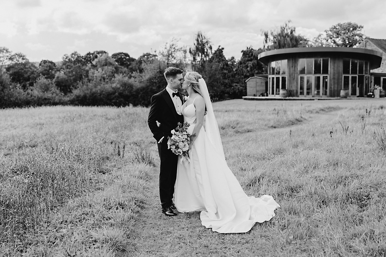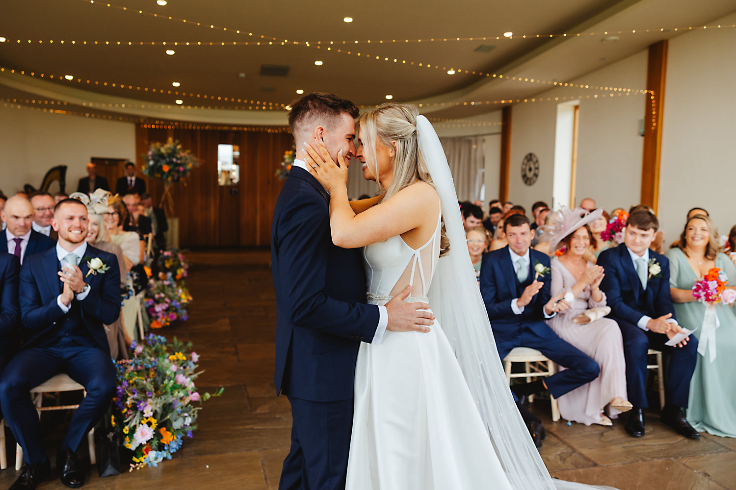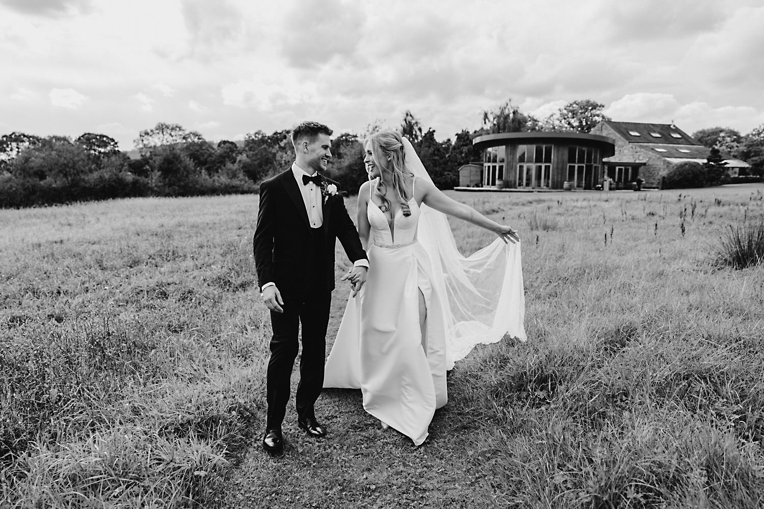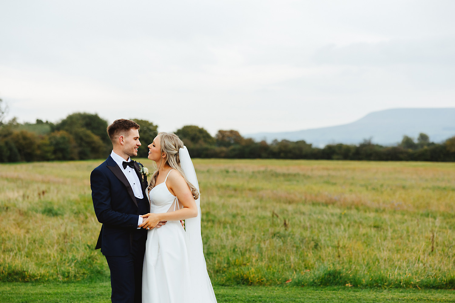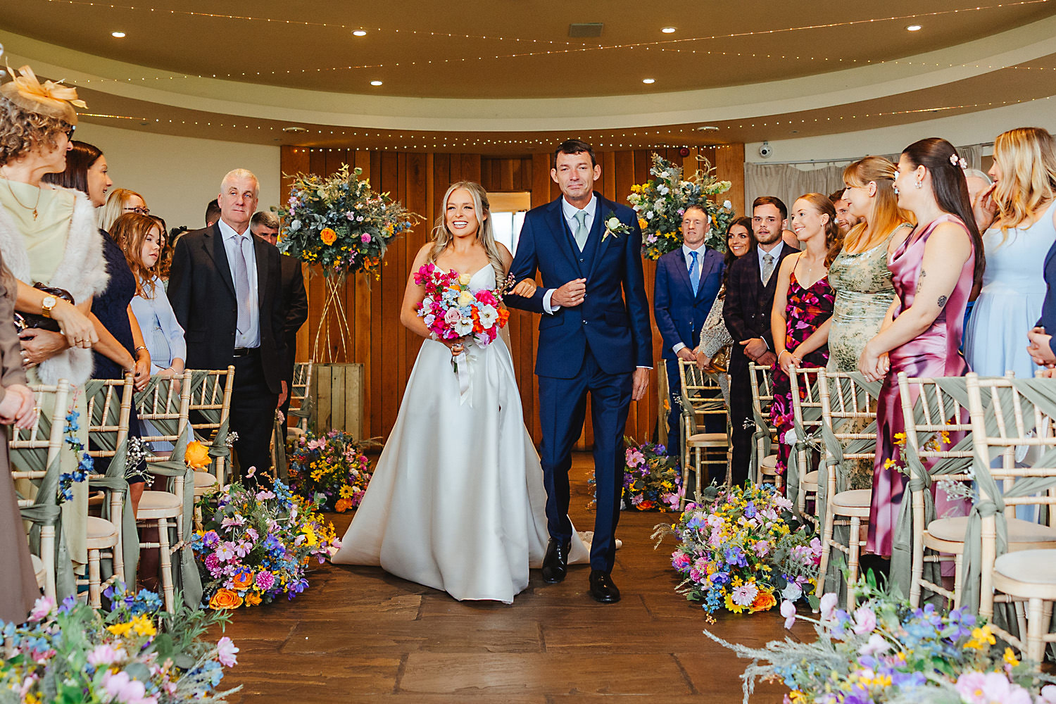 The venue was also dressed to perfection, with the most glorious colourful flowers, white linen, and sparkling glassware. It was great to get everyone outdoors, for some group shots, as the views are incredible from the Out Barn. Check out that blend of wildflower fields, manicured lawns, woodland areas, and incredible sweeping views. It really is the most magnificent venue.