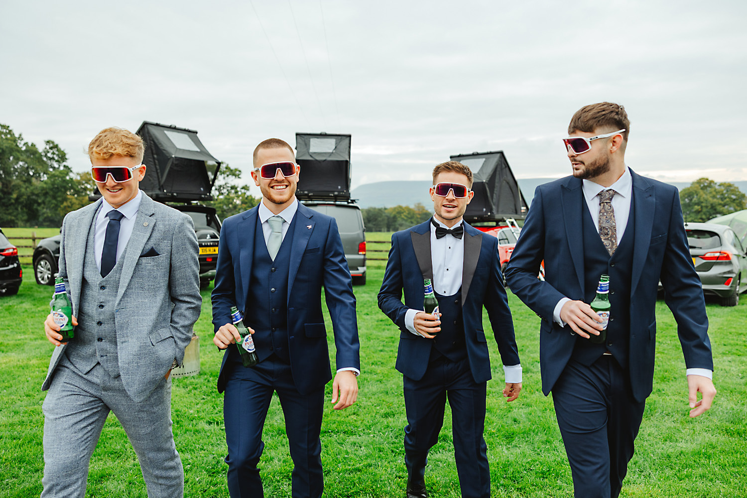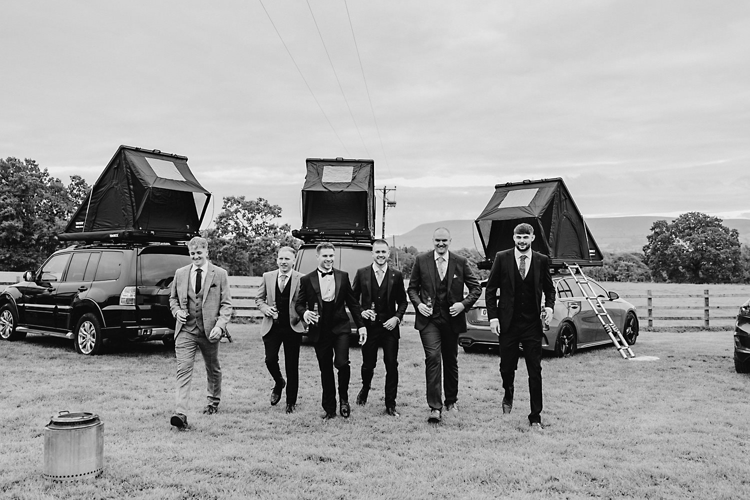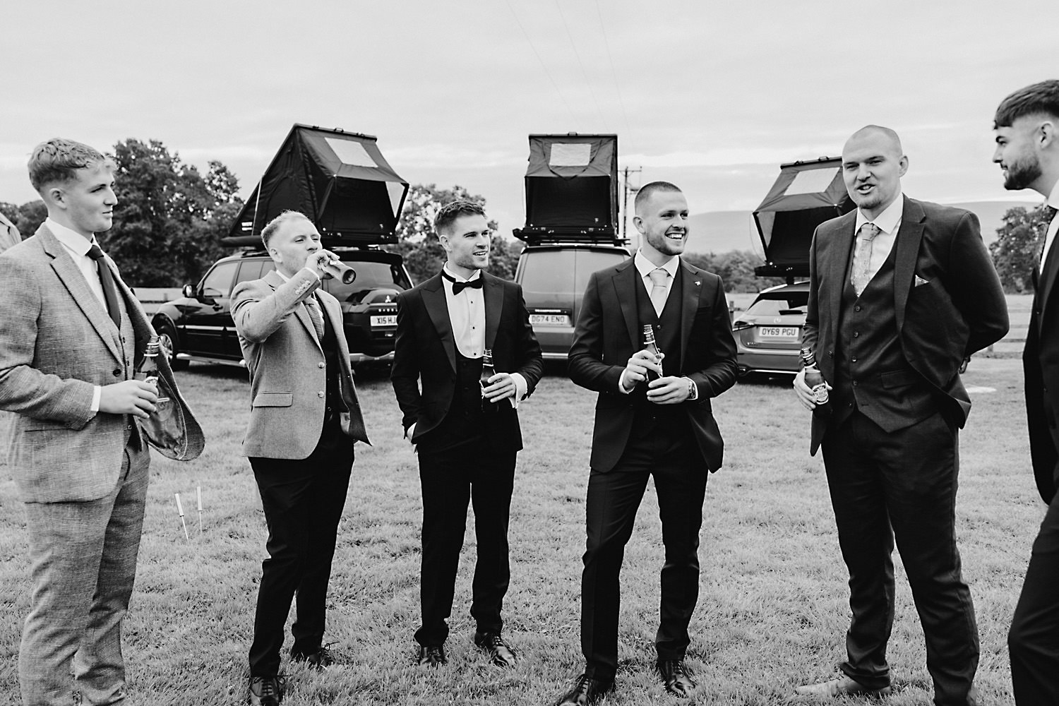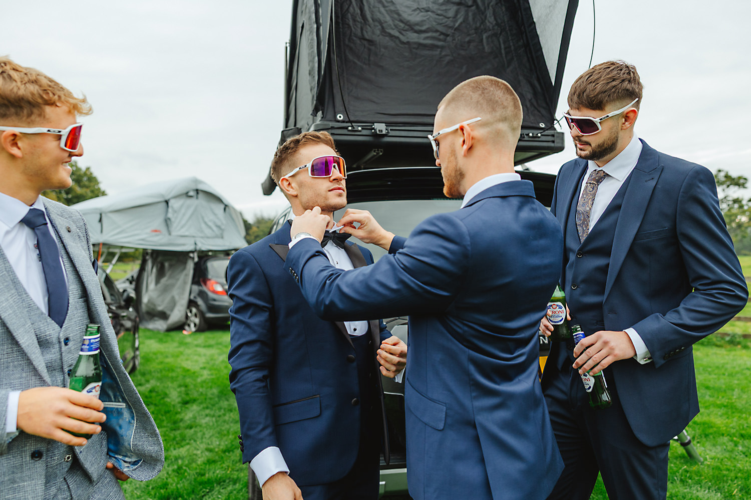 Sean, the groom, actually camped with his family and friends the night before in a field near the venue! It was a brilliant setup with tent boxes, caravans, and camper vans, and the groom’s prep photography was so much fun! With all the space and the beautiful surroundings, they really had the perfect setup for getting ready without any stress.