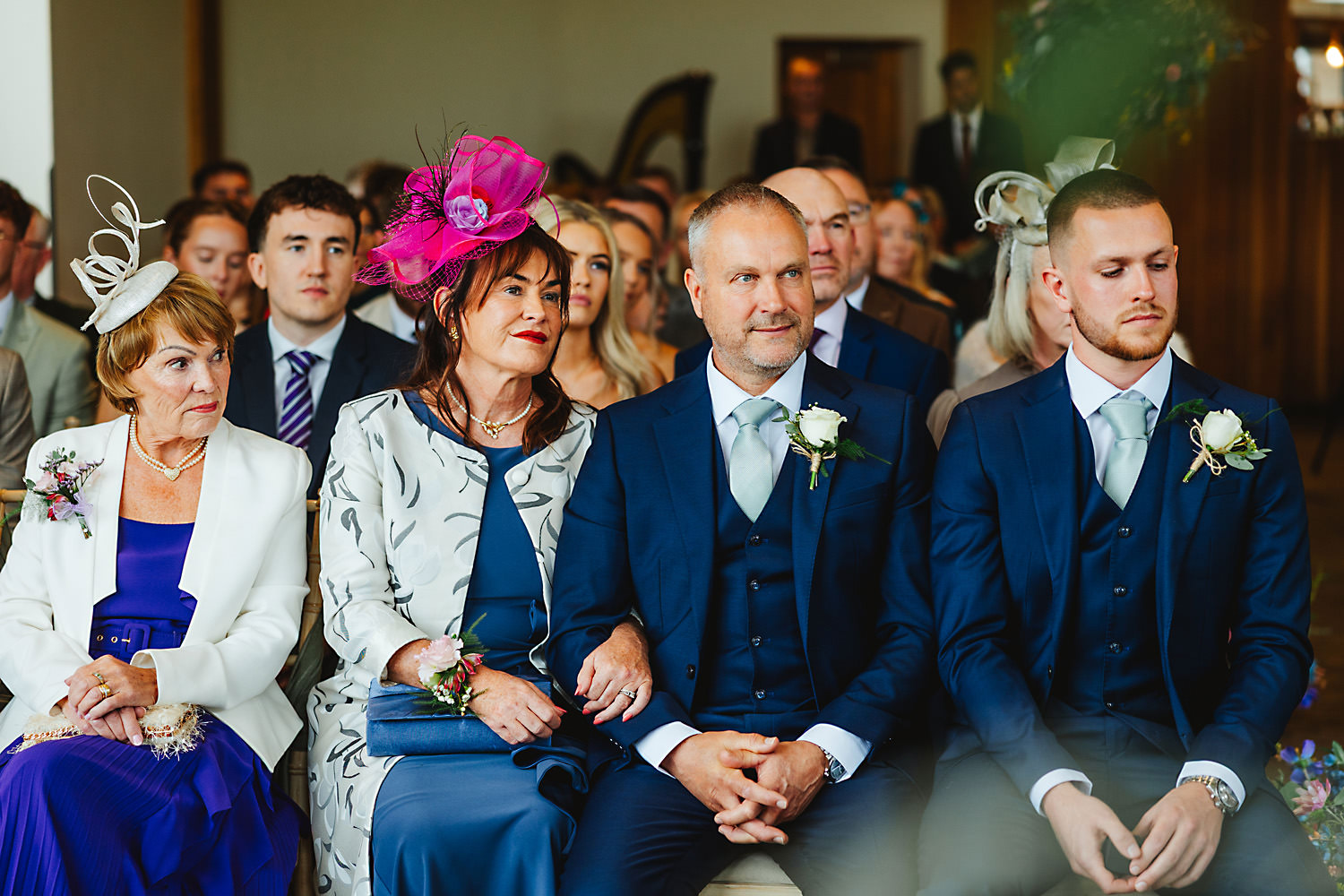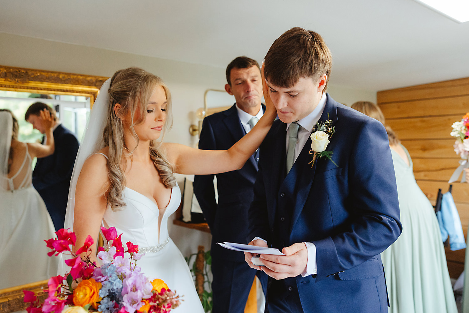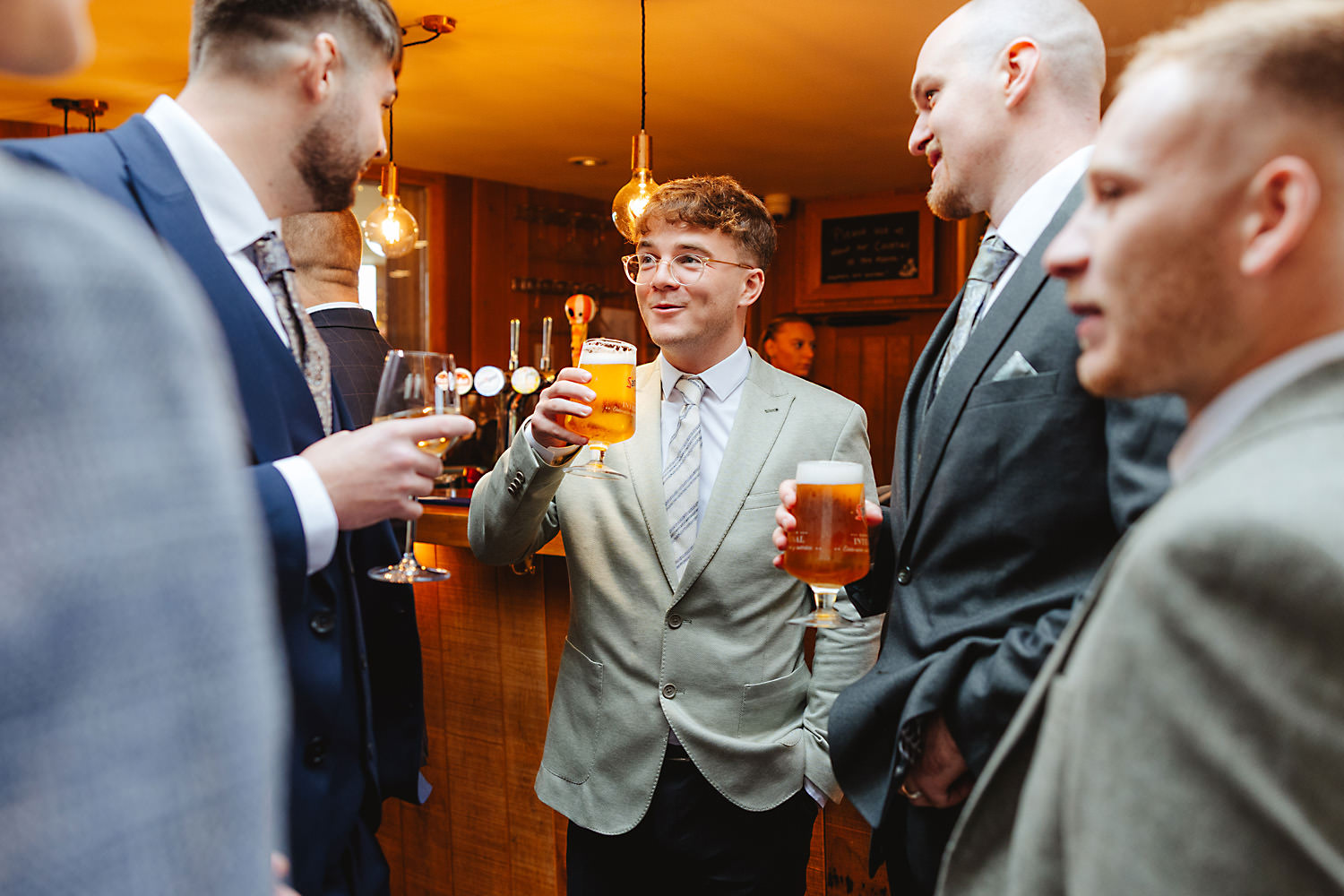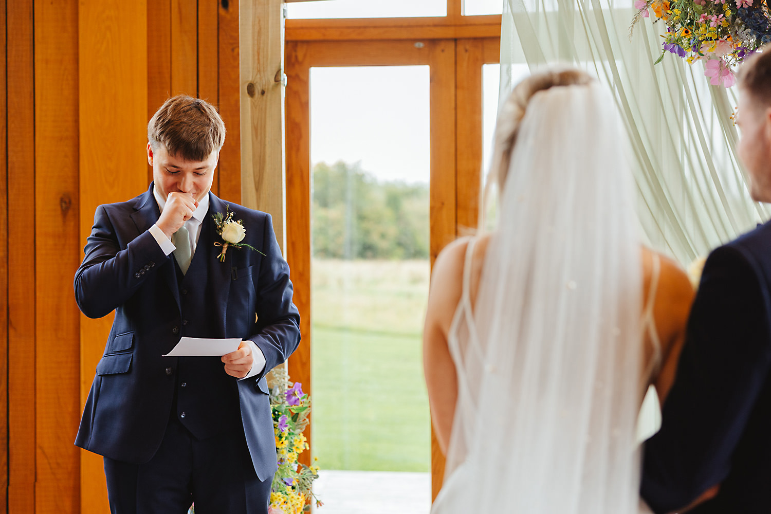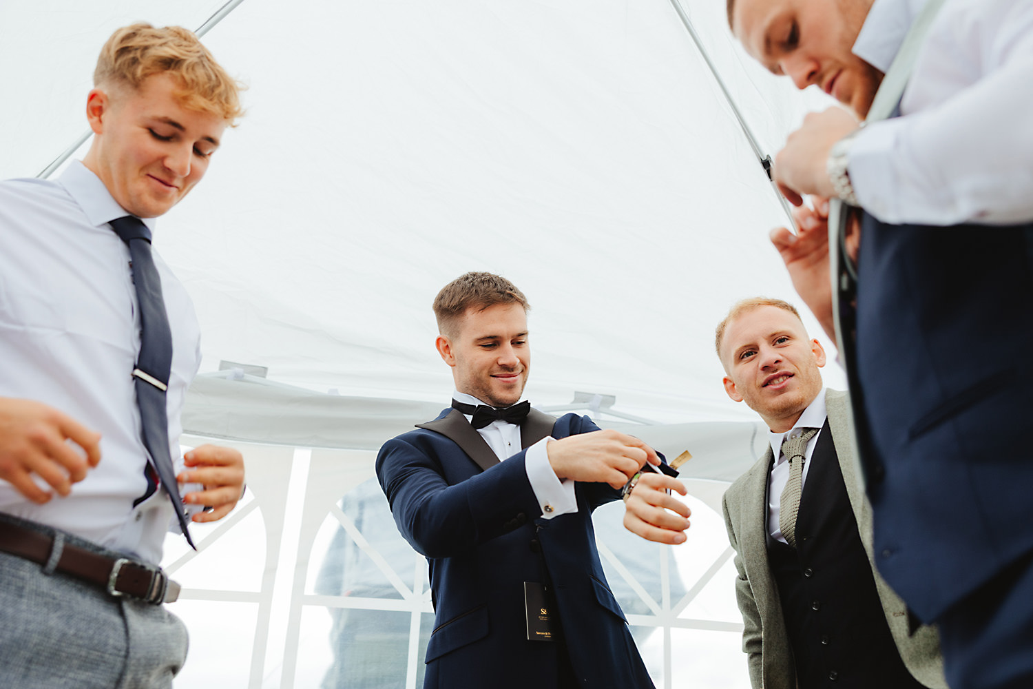 Sean, the groom, actually camped with his family and friends the night before in a field near the venue! It was a brilliant setup with tent boxes, caravans, and camper vans, and the groom’s prep photography was so much fun! With all the space and the beautiful surroundings, they really had the perfect setup for getting ready without any stress.