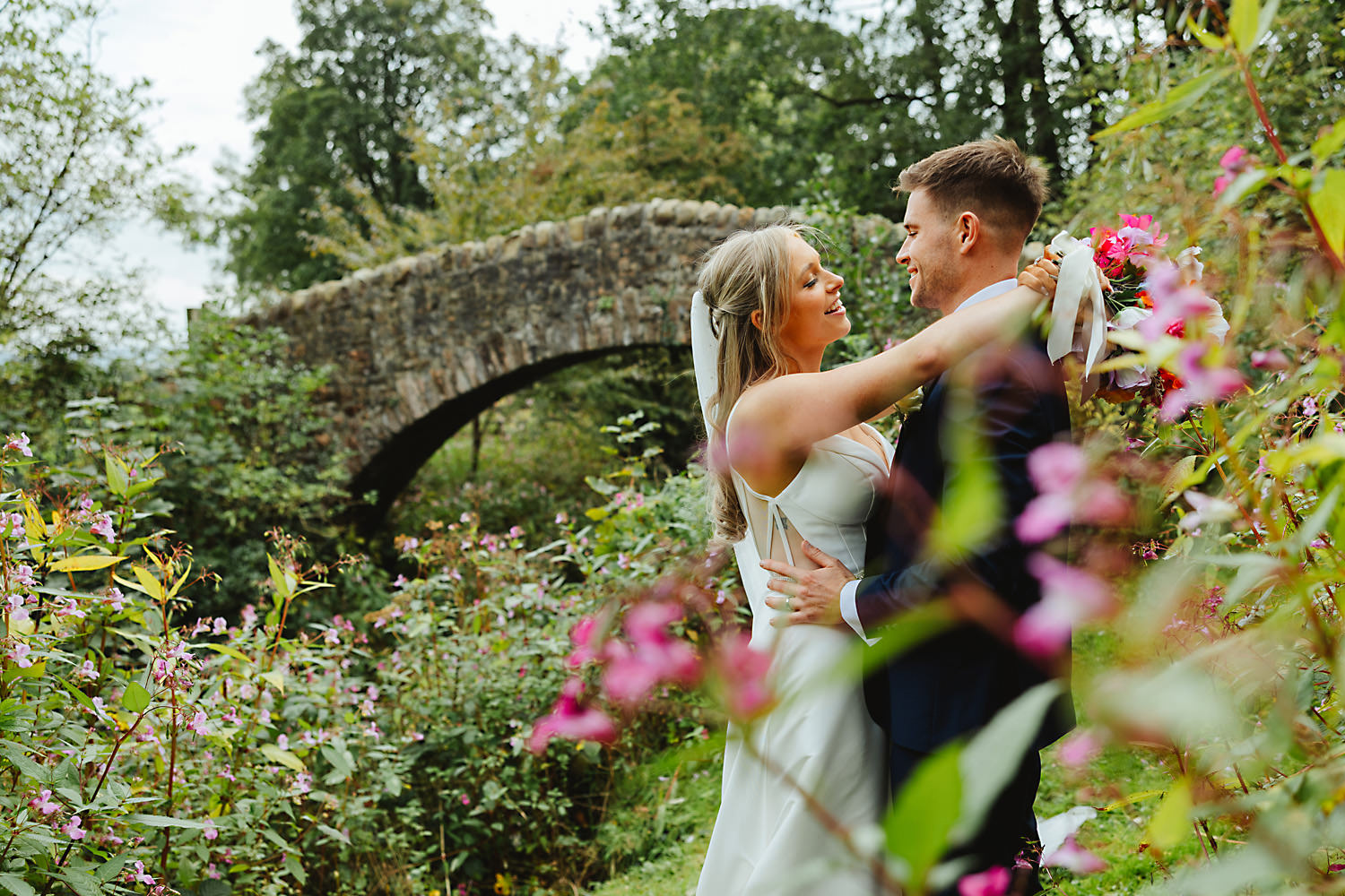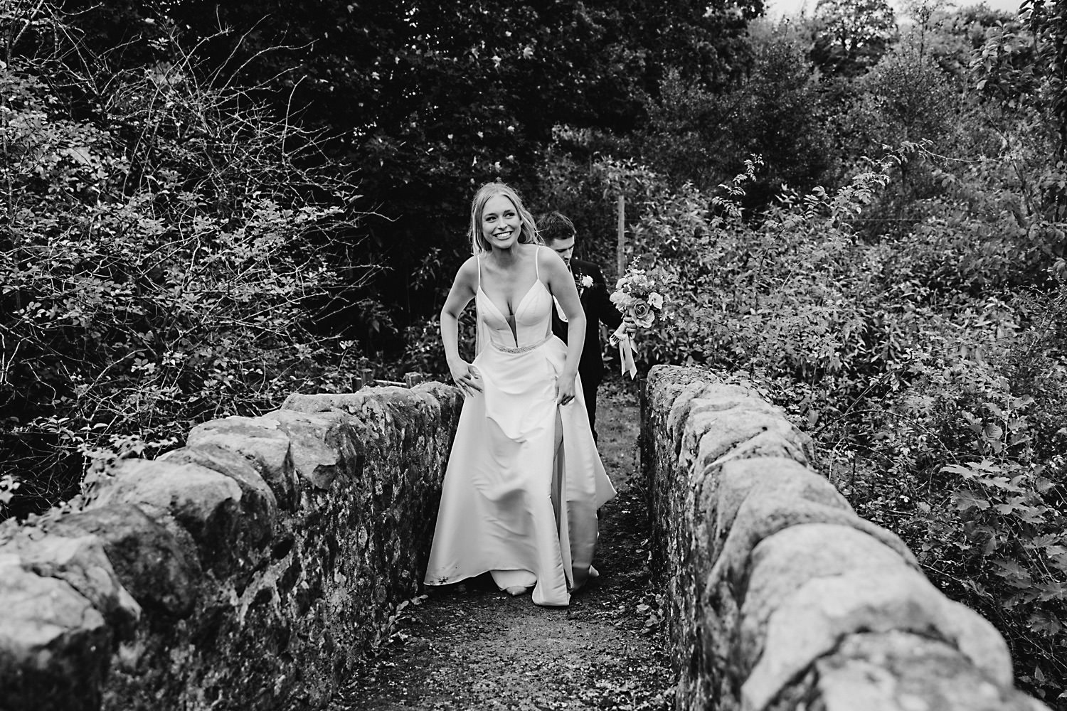I also take the happy couple off for some bride and groom portraits after the ceremony. This is always a special moment, as the newlyweds are often a bit shell-shocked and giggly, and they love having that little bit of time together, all to themselves. I managed to get Olivia and Sean off to the beautiful green field area near the stone bridge for some intimate and natural newlywed portraits.